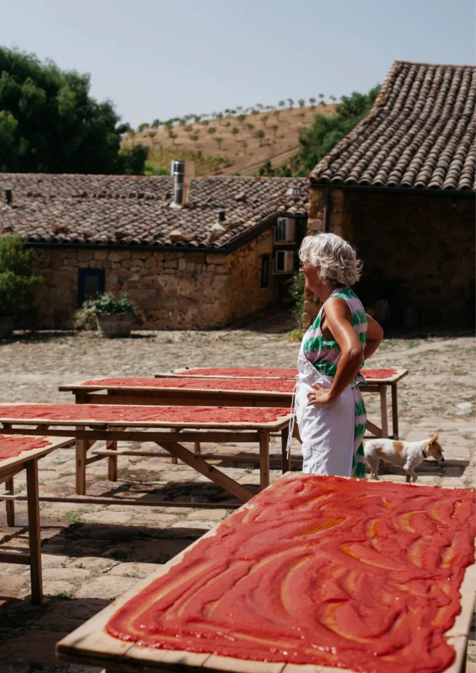 Tomato extract, or “u strattu,” is a long Sicilian tradition from long before the days of convenience foods; women would crush tomatoes and spread them on large boards to dry out in the sun for three or four days. We follows the recipe passed down by our family, adding only laurel leaves, extra virgin olive oil and sea salt to the fresh tomatoes, and slowly turning them into a delicious kitchen staple that adds so much more depth of flavor than tomato paste in a tube.